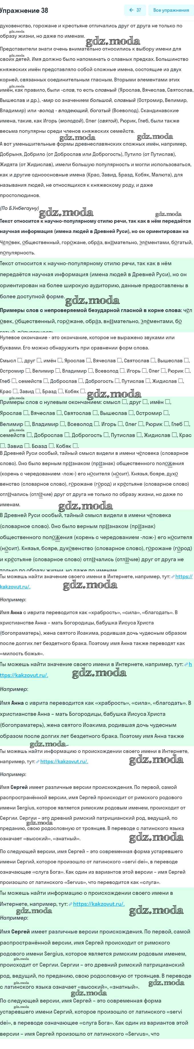 ОТВЕТ на задание № 38 Учебник по Русскому языку 6 класс Рыбченкова