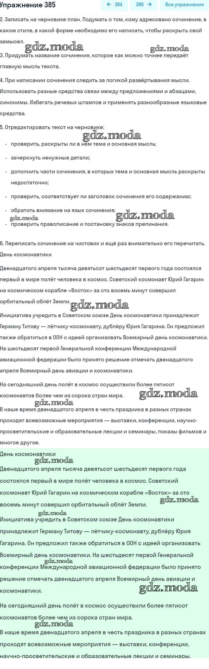 ГДЗ решение к заданию № 385 Русский язык 6 класс Рыбченкова Л.М. Просвещение 2016 Часть 1, Часть 2 ФГОС бесплатно на гдз.мода!