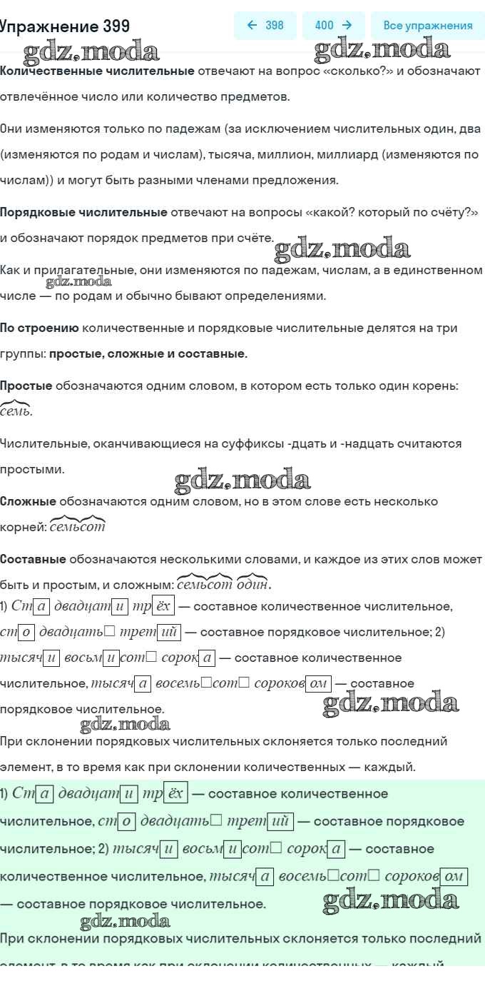 ОТВЕТ на задание № 399 Учебник по Русскому языку 6 класс Рыбченкова