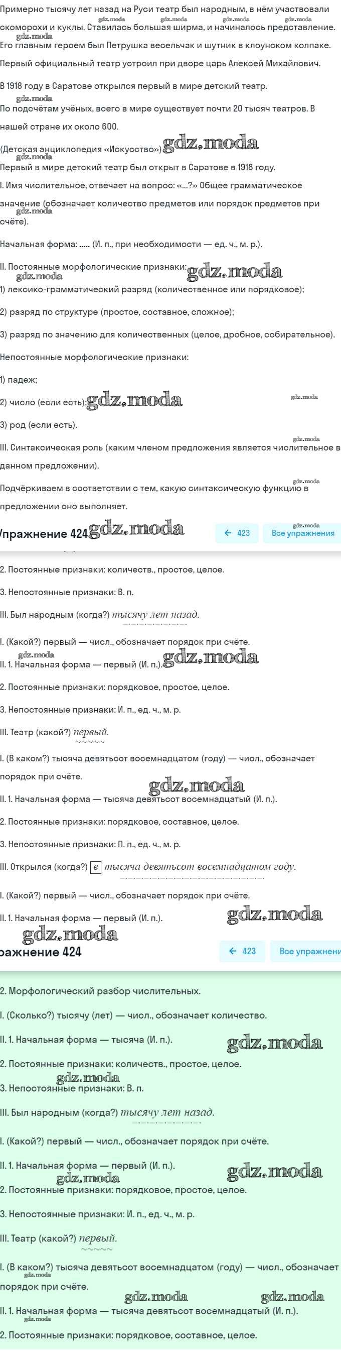 ОТВЕТ на задание № 424 Учебник по Русскому языку 6 класс Рыбченкова