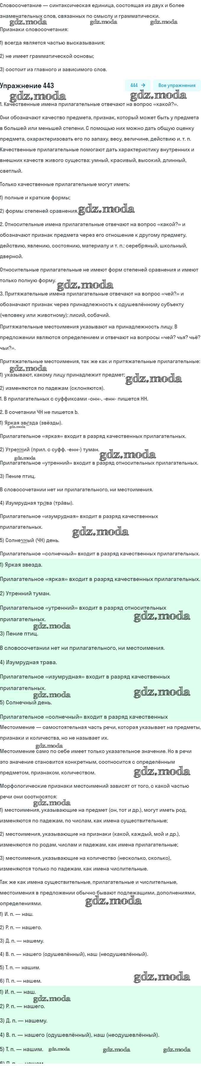 ГДЗ решение к заданию № 443 Русский язык 6 класс Рыбченкова Л.М. Просвещение 2016 Часть 1, Часть 2 ФГОС бесплатно на гдз.мода!