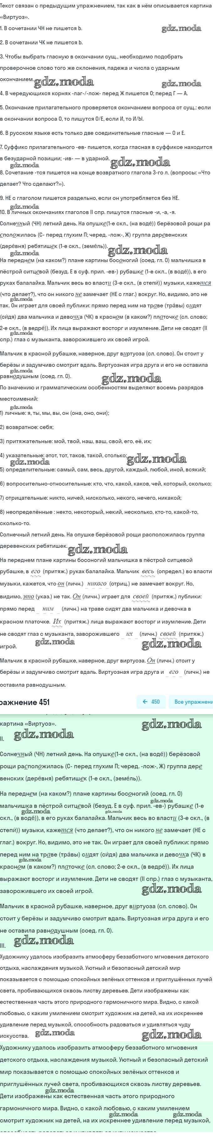 ГДЗ решение к заданию № 451 Русский язык 6 класс Рыбченкова Л.М. Просвещение 2016 Часть 1, Часть 2 ФГОС бесплатно на гдз.мода!