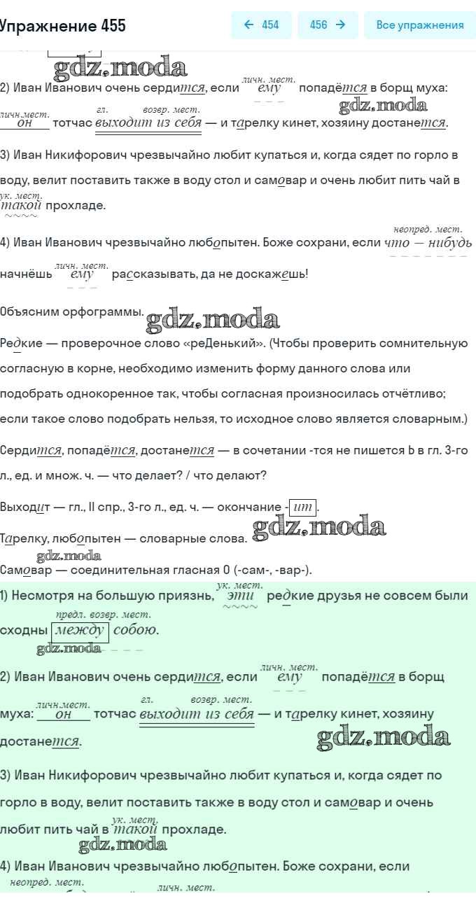 ОТВЕТ на задание № 455 Учебник по Русскому языку 6 класс Рыбченкова