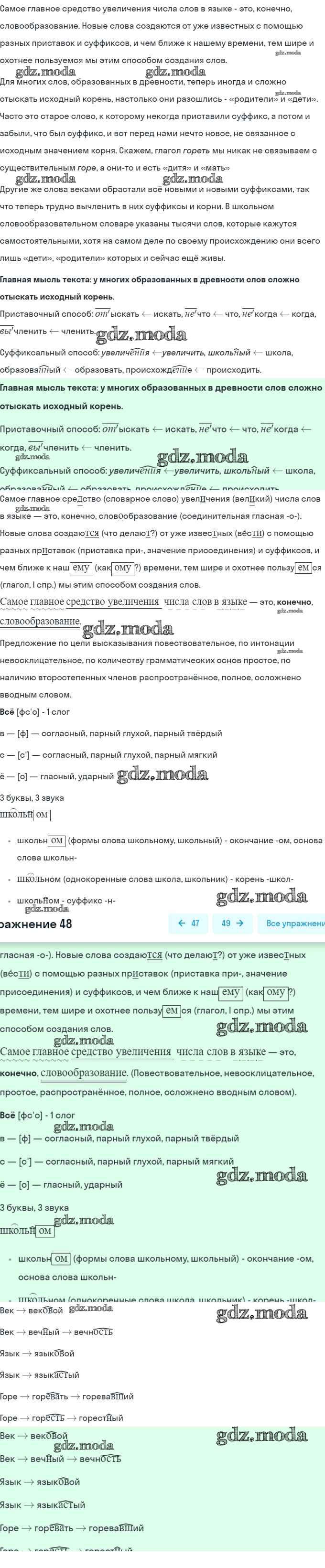 ГДЗ решение к заданию № 48 Русский язык 6 класс Рыбченкова Л.М. Просвещение 2016 Часть 1, Часть 2 ФГОС бесплатно на гдз.мода!