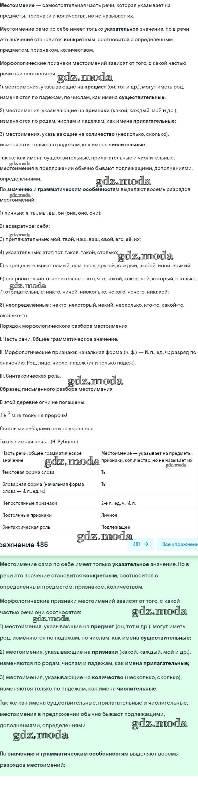 ОТВЕТ на задание № 486 Учебник по Русскому языку 6 класс Рыбченкова