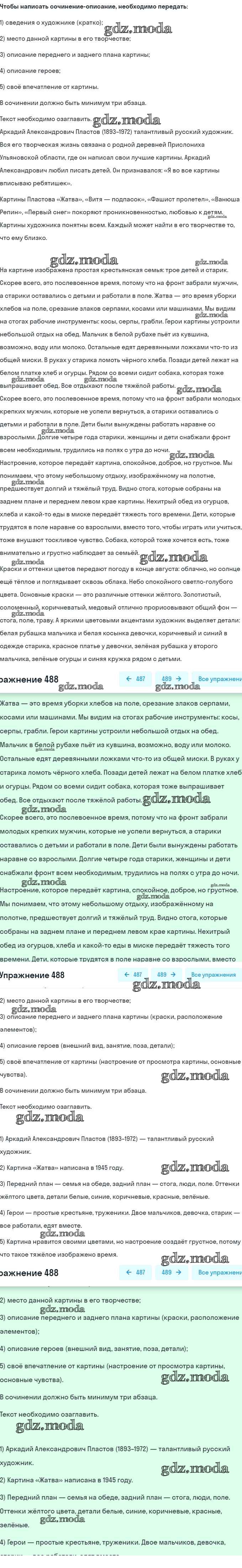 ГДЗ решение к заданию № 488 Русский язык 6 класс Рыбченкова Л.М. Просвещение 2016 Часть 1, Часть 2 ФГОС бесплатно на гдз.мода!