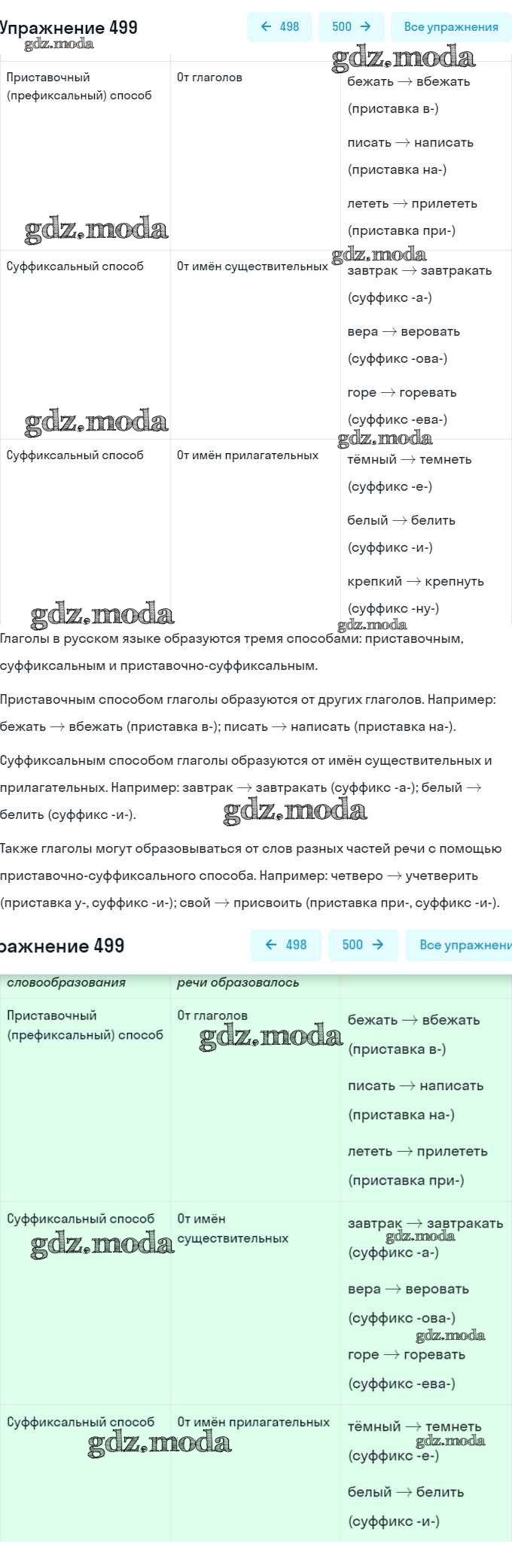 ОТВЕТ на задание № 499 Учебник по Русскому языку 6 класс Рыбченкова
