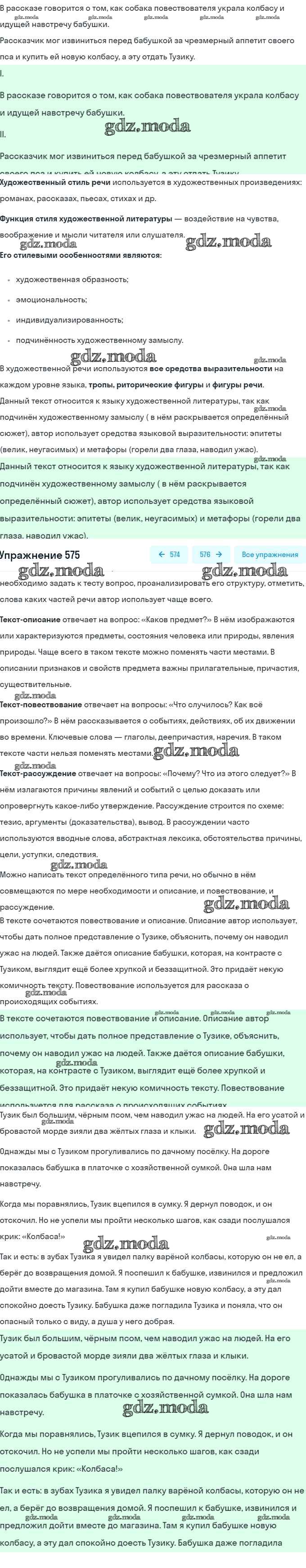 ГДЗ решение к заданию № 575 Русский язык 6 класс Рыбченкова Л.М. Просвещение 2016 Часть 1, Часть 2 ФГОС бесплатно на гдз.мода!