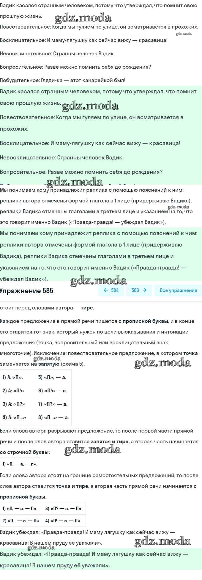 ГДЗ решение к заданию № 585 Русский язык 6 класс Рыбченкова Л.М. Просвещение 2016 Часть 1, Часть 2 ФГОС бесплатно на гдз.мода!