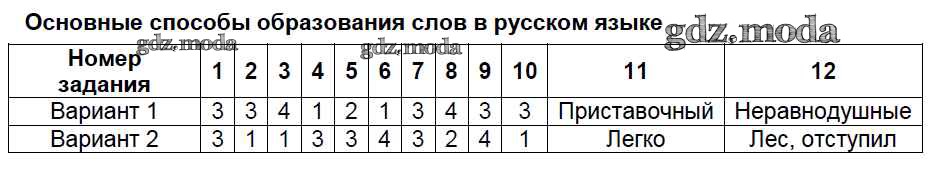 ГДЗ решение к заданию № Тест-10. Основные способы образования слов в русском языке Русский язык 6 класс Тесты Селезнева Е.В. (к уч. Ладыженской) Экзамен 2014 Часть 1, Часть 2 ФГОС бесплатно на гдз.мода!