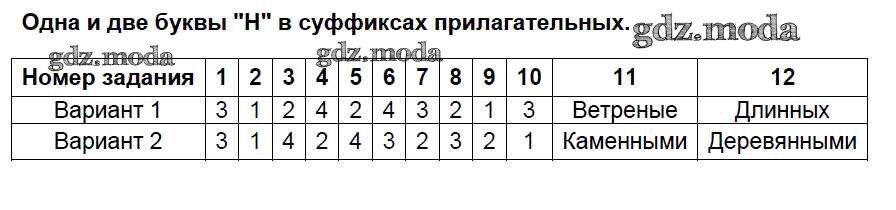ОТВЕТ на задание № Тест-3. Одна и две буквы Н в суффиксах прилагательных Тесты по Русскому языку 6 класс Селезнева УМК