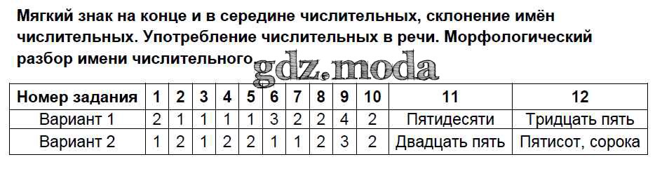 ОТВЕТ на задание № Тест-8. Мягкий знак на конце и в середине числительных, склонение имён числительных Тесты по Русскому языку 6 класс Селезнева УМК