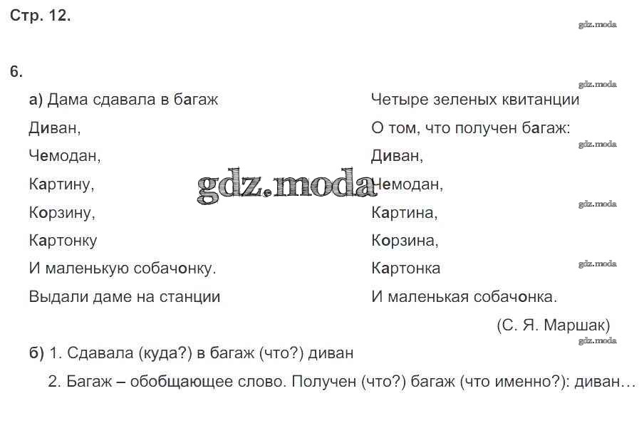 ГДЗ решение к заданию № 12 Русский язык 6 класс рабочая тетрадь Тростенцова Л.А. (к уч. Ладыженской) Экзамен 2018 Часть 1, Часть 2 ФГОС бесплатно на гдз.мода!