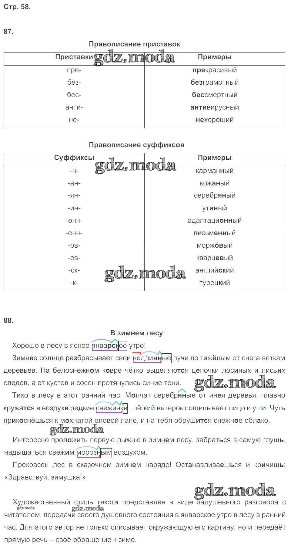 ГДЗ решение к заданию № 58 Русский язык 6 класс рабочая тетрадь Тростенцова Л.А. (к уч. Ладыженской) Экзамен 2018 Часть 1, Часть 2 ФГОС бесплатно на гдз.мода!