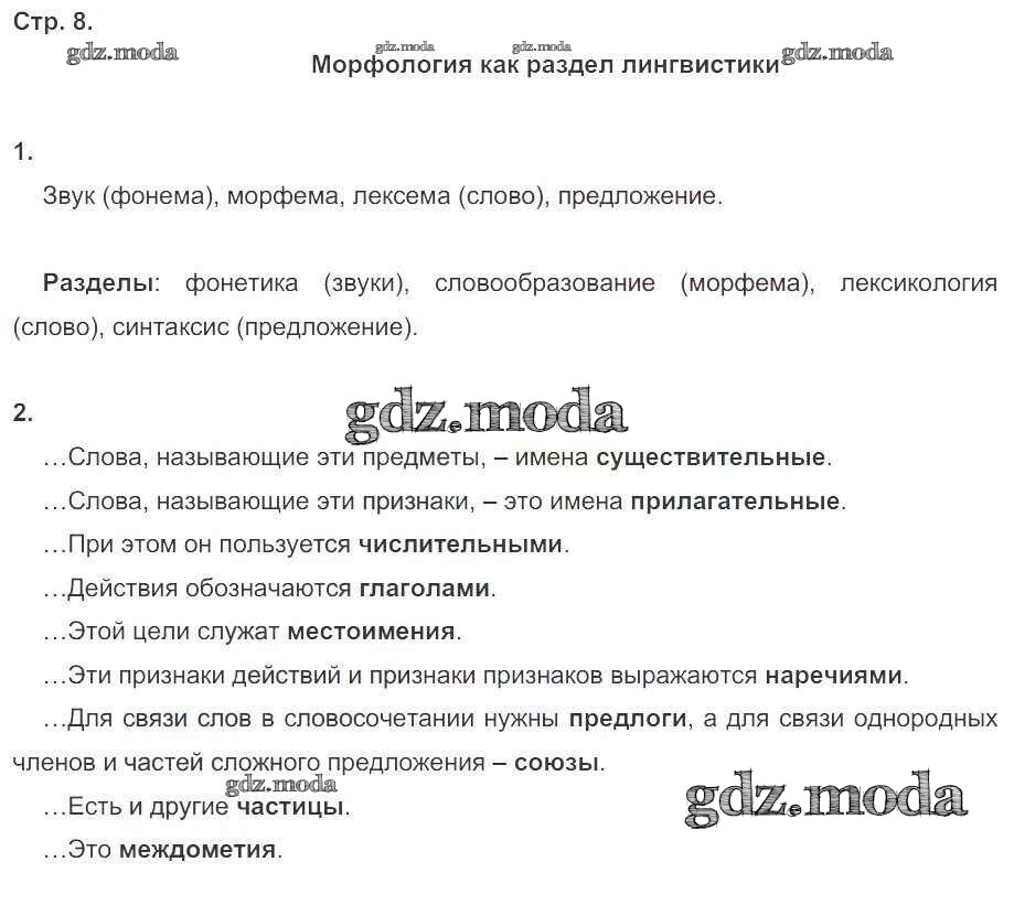 ГДЗ решение к заданию № 8 Русский язык 6 класс рабочая тетрадь Тростенцова Л.А. (к уч. Ладыженской) Экзамен 2018 Часть 1, Часть 2 ФГОС бесплатно на гдз.мода!