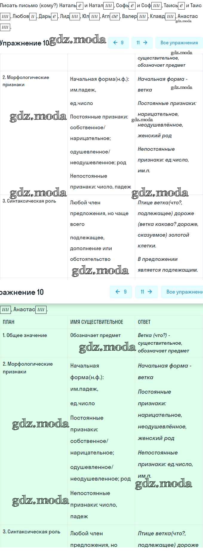 ГДЗ решение к заданию № 10 Русский язык 6 класс рабочая тетрадь Тростенцова Л.А. (к уч. Ладыженской) Экзамен 2018 Часть 1, Часть 2 ФГОС бесплатно на гдз.мода!