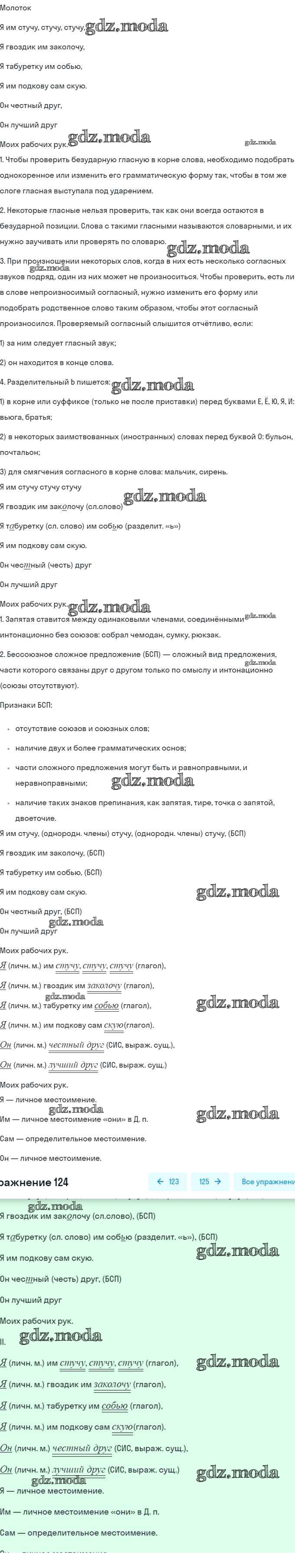 ГДЗ решение к заданию № 124 Русский язык 6 класс рабочая тетрадь Тростенцова Л.А. (к уч. Ладыженской) Экзамен 2018 Часть 1, Часть 2 ФГОС бесплатно на гдз.мода!