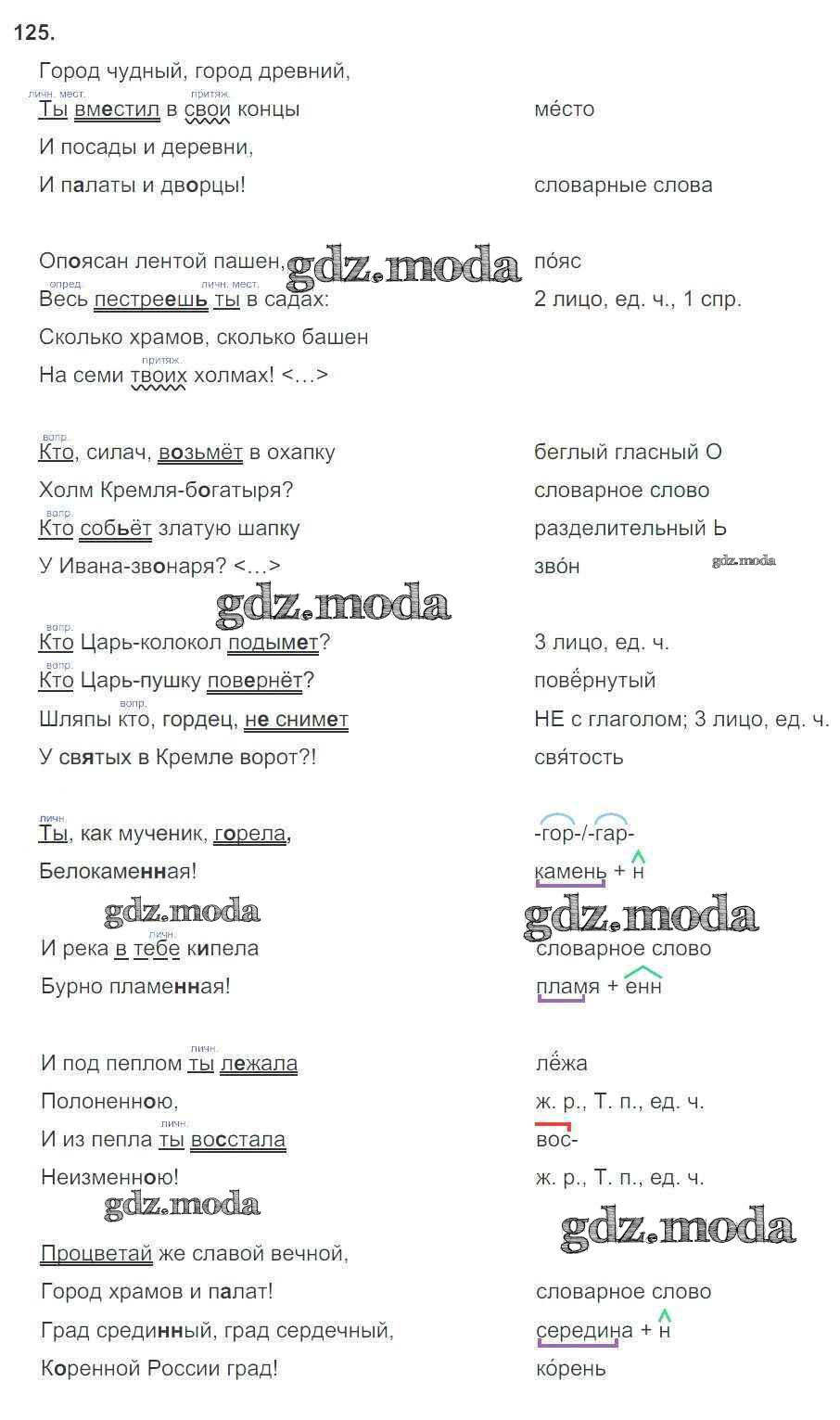 ГДЗ решение к заданию № 125 Русский язык 6 класс рабочая тетрадь Тростенцова Л.А. (к уч. Ладыженской) Экзамен 2018 Часть 1, Часть 2 ФГОС бесплатно на гдз.мода!
