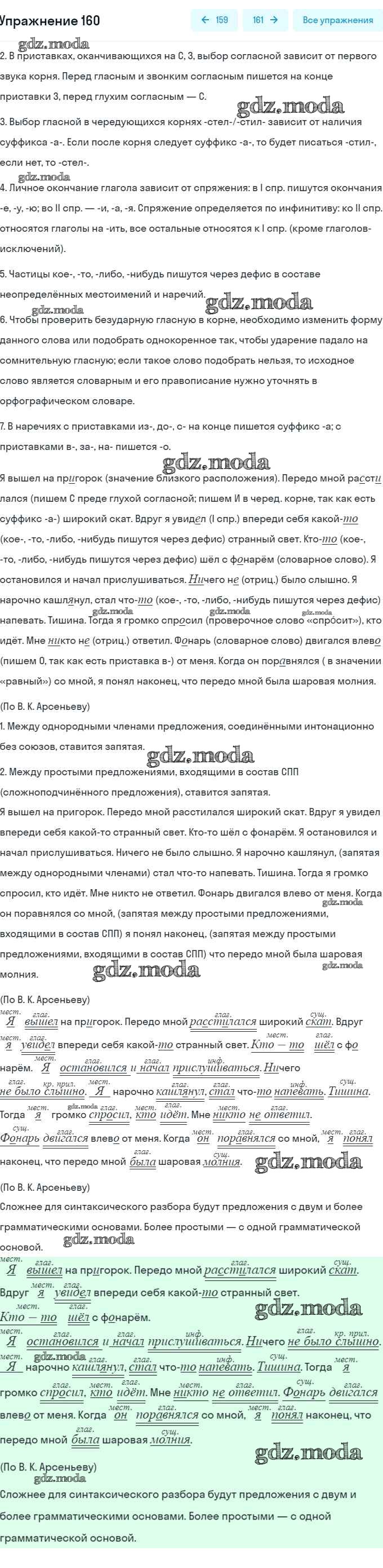 ГДЗ решение к заданию № 160 Русский язык 6 класс рабочая тетрадь Тростенцова Л.А. (к уч. Ладыженской) Экзамен 2018 Часть 1, Часть 2 ФГОС бесплатно на гдз.мода!