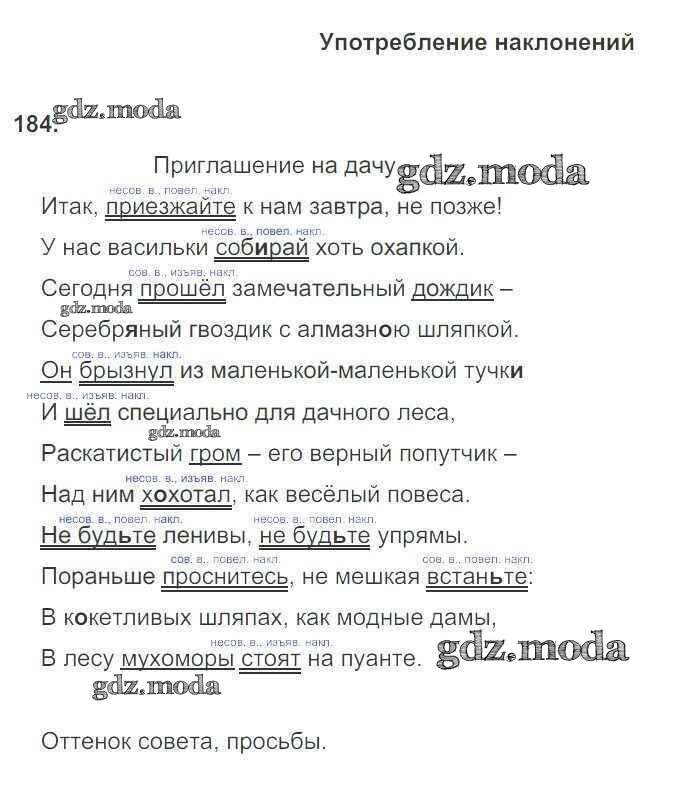 ГДЗ решение к заданию № 184 Русский язык 6 класс рабочая тетрадь Тростенцова Л.А. (к уч. Ладыженской) Экзамен 2018 Часть 1, Часть 2 ФГОС бесплатно на гдз.мода!