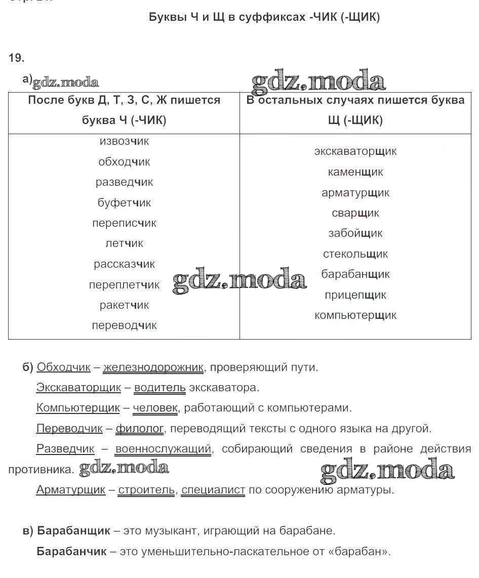 ГДЗ решение к заданию № 19 Русский язык 6 класс рабочая тетрадь Тростенцова Л.А. (к уч. Ладыженской) Экзамен 2018 Часть 1, Часть 2 ФГОС бесплатно на гдз.мода!