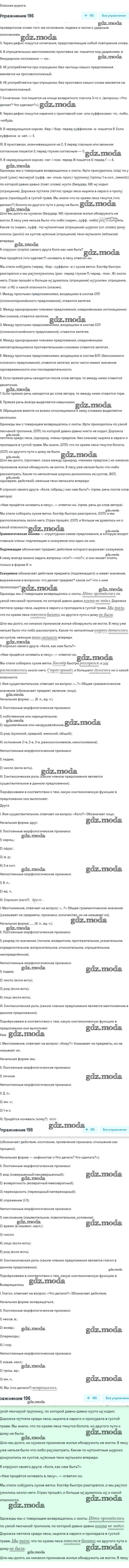 ГДЗ решение к заданию № 196 Русский язык 6 класс рабочая тетрадь Тростенцова Л.А. (к уч. Ладыженской) Экзамен 2018 Часть 1, Часть 2 ФГОС бесплатно на гдз.мода!