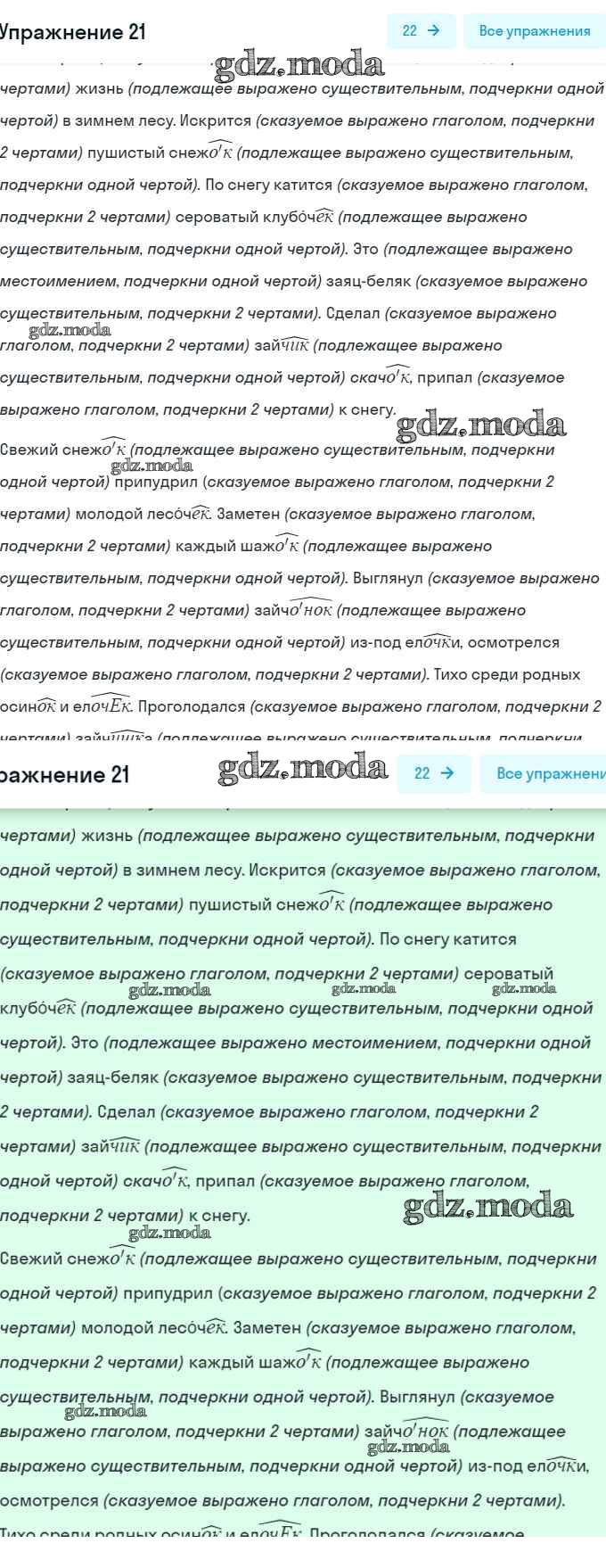 ГДЗ решение к заданию № 21 Русский язык 6 класс рабочая тетрадь Тростенцова Л.А. (к уч. Ладыженской) Экзамен 2018 Часть 1, Часть 2 ФГОС бесплатно на гдз.мода!