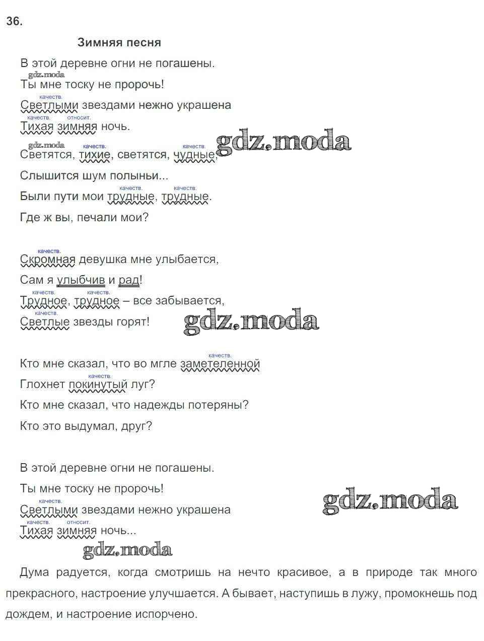 ГДЗ решение к заданию № 36 Русский язык 6 класс рабочая тетрадь Тростенцова Л.А. (к уч. Ладыженской) Экзамен 2018 Часть 1, Часть 2 ФГОС бесплатно на гдз.мода!