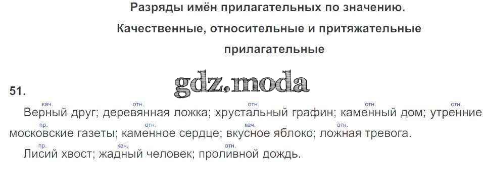 ГДЗ решение к заданию № 51 Русский язык 6 класс рабочая тетрадь Тростенцова Л.А. (к уч. Ладыженской) Экзамен 2018 Часть 1, Часть 2 ФГОС бесплатно на гдз.мода!