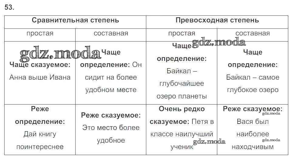 ГДЗ решение к заданию № 53 Русский язык 6 класс рабочая тетрадь Тростенцова Л.А. (к уч. Ладыженской) Экзамен 2018 Часть 1, Часть 2 ФГОС бесплатно на гдз.мода!