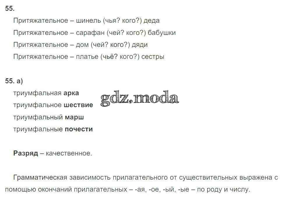 ГДЗ решение к заданию № 55 Русский язык 6 класс рабочая тетрадь Тростенцова Л.А. (к уч. Ладыженской) Экзамен 2018 Часть 1, Часть 2 ФГОС бесплатно на гдз.мода!