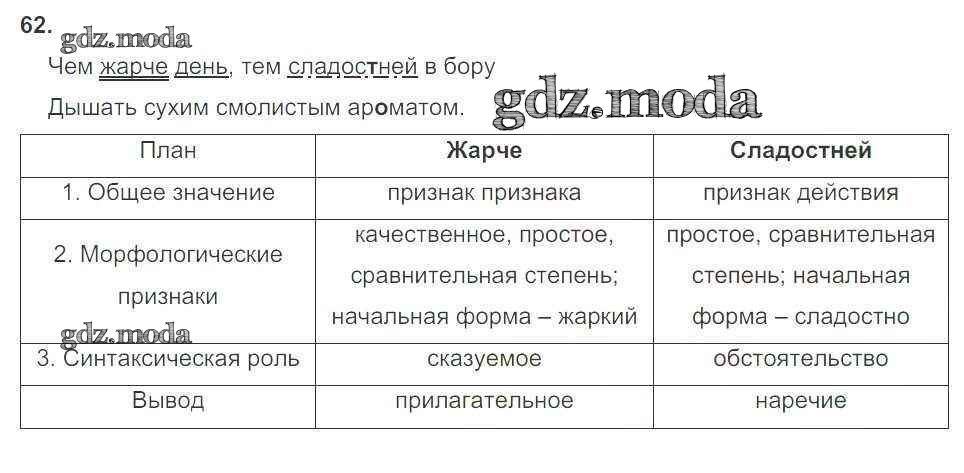 ГДЗ решение к заданию № 62 Русский язык 6 класс рабочая тетрадь Тростенцова Л.А. (к уч. Ладыженской) Экзамен 2018 Часть 1, Часть 2 ФГОС бесплатно на гдз.мода!