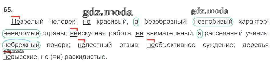 ГДЗ решение к заданию № 65 Русский язык 6 класс рабочая тетрадь Тростенцова Л.А. (к уч. Ладыженской) Экзамен 2018 Часть 1, Часть 2 ФГОС бесплатно на гдз.мода!