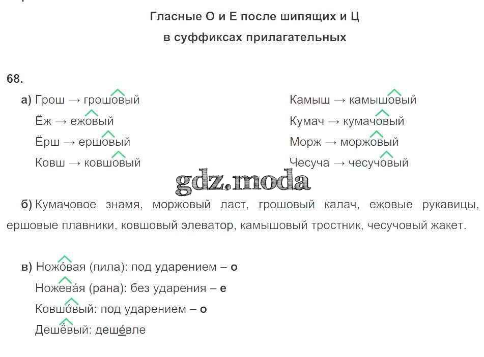 ОТВЕТ на задание № 68 Рабочая тетрадь по Русскому языку 6 класс Тростенцова УМК