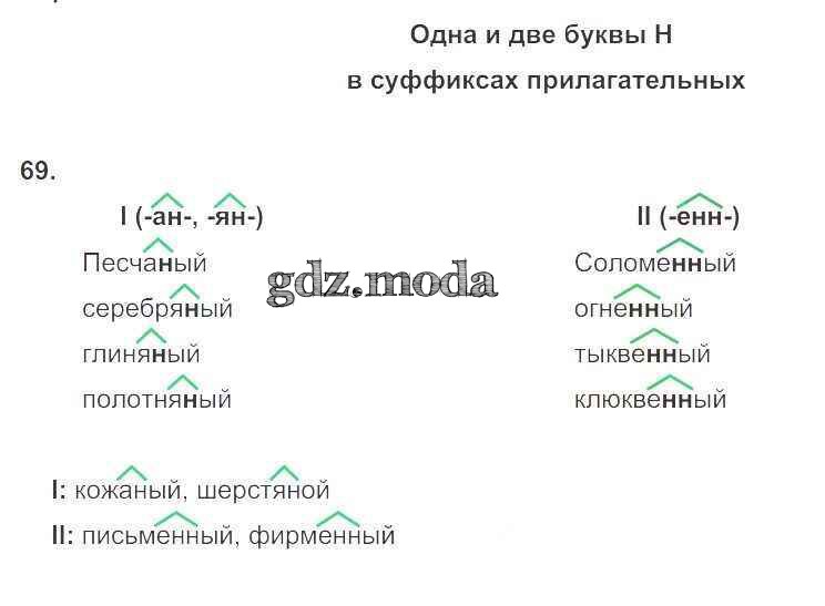 ГДЗ решение к заданию № 69 Русский язык 6 класс рабочая тетрадь Тростенцова Л.А. (к уч. Ладыженской) Экзамен 2018 Часть 1, Часть 2 ФГОС бесплатно на гдз.мода!