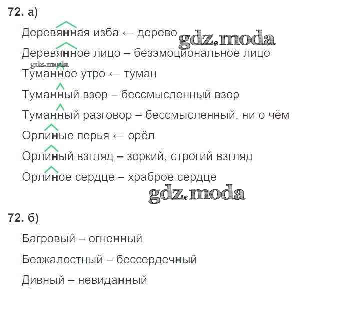 ГДЗ решение к заданию № 72 Русский язык 6 класс рабочая тетрадь Тростенцова Л.А. (к уч. Ладыженской) Экзамен 2018 Часть 1, Часть 2 ФГОС бесплатно на гдз.мода!