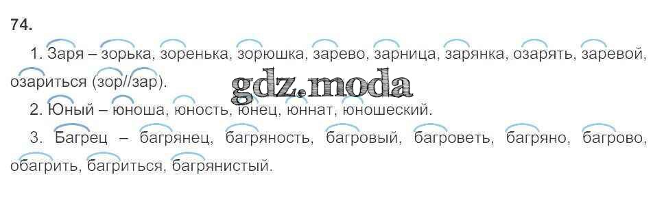 ГДЗ решение к заданию № 74 Русский язык 6 класс рабочая тетрадь Тростенцова Л.А. (к уч. Ладыженской) Экзамен 2018 Часть 1, Часть 2 ФГОС бесплатно на гдз.мода!