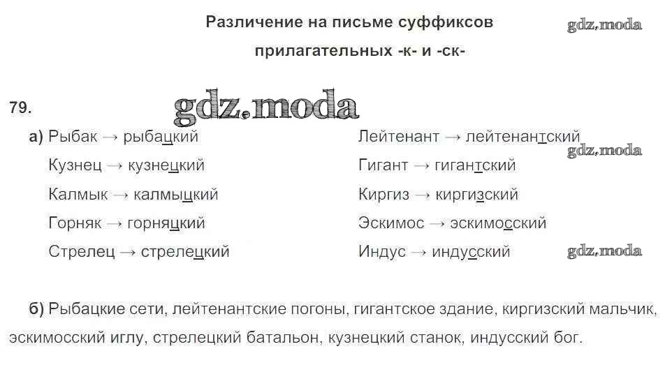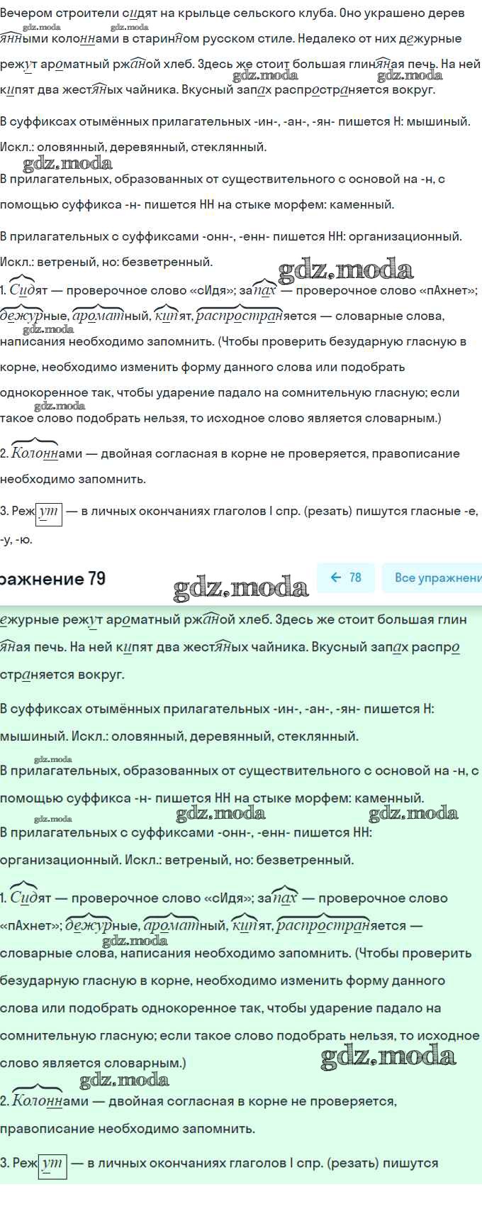 ГДЗ решение к заданию № 79 Русский язык 6 класс рабочая тетрадь Тростенцова Л.А. (к уч. Ладыженской) Экзамен 2018 Часть 1, Часть 2 ФГОС бесплатно на гдз.мода!