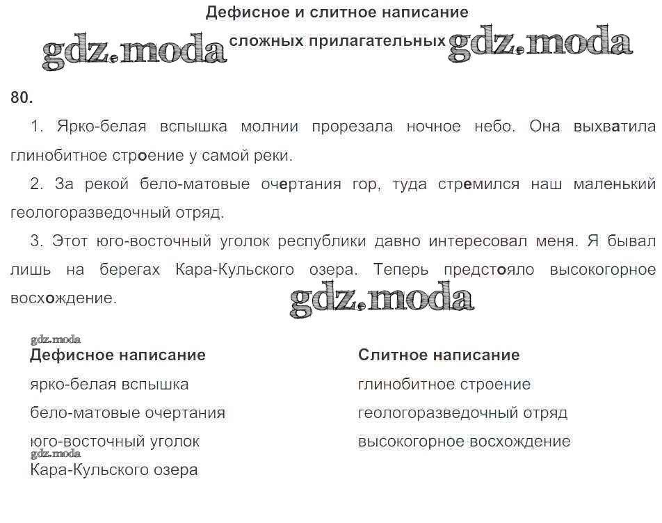 ГДЗ решение к заданию № 80 Русский язык 6 класс рабочая тетрадь Тростенцова Л.А. (к уч. Ладыженской) Экзамен 2018 Часть 1, Часть 2 ФГОС бесплатно на гдз.мода!
