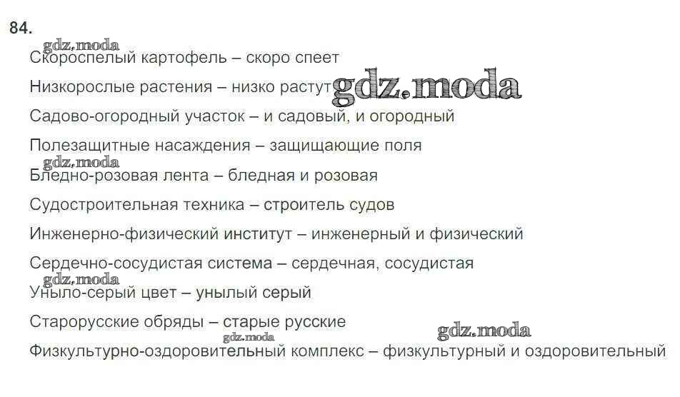 ГДЗ решение к заданию № 84 Русский язык 6 класс рабочая тетрадь Тростенцова Л.А. (к уч. Ладыженской) Экзамен 2018 Часть 1, Часть 2 ФГОС бесплатно на гдз.мода!