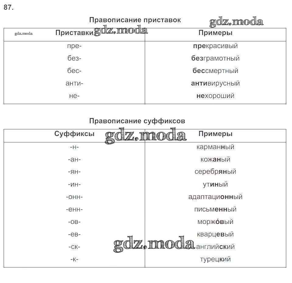 ГДЗ решение к заданию № 87 Русский язык 6 класс рабочая тетрадь Тростенцова Л.А. (к уч. Ладыженской) Экзамен 2018 Часть 1, Часть 2 ФГОС бесплатно на гдз.мода!