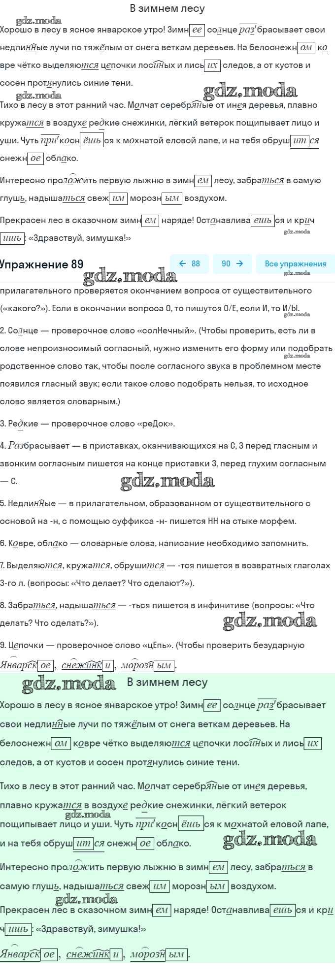 ГДЗ решение к заданию № 89 Русский язык 6 класс рабочая тетрадь Тростенцова Л.А. (к уч. Ладыженской) Экзамен 2018 Часть 1, Часть 2 ФГОС бесплатно на гдз.мода!
