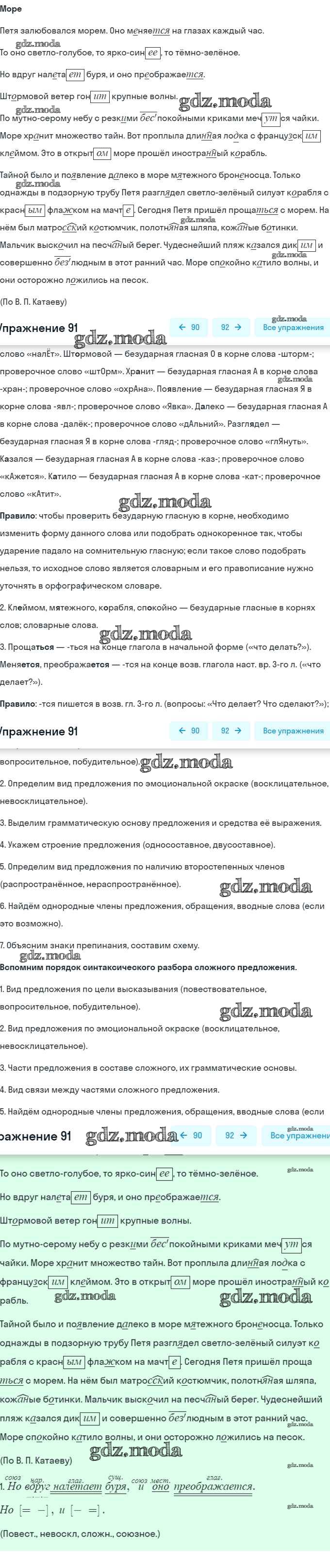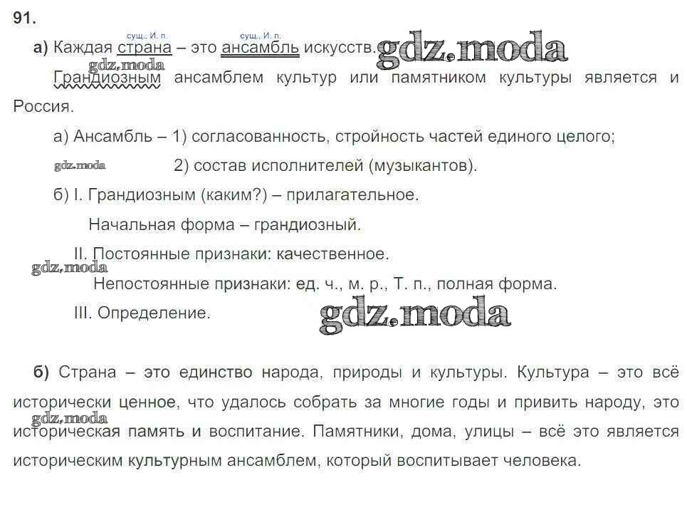 ГДЗ решение к заданию № 91 Русский язык 6 класс рабочая тетрадь Тростенцова Л.А. (к уч. Ладыженской) Экзамен 2018 Часть 1, Часть 2 ФГОС бесплатно на гдз.мода!