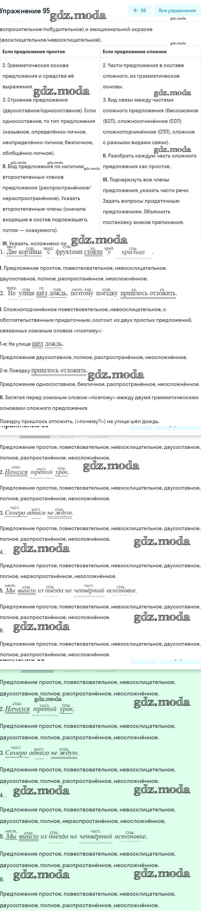 ГДЗ решение к заданию № 95 Русский язык 6 класс рабочая тетрадь Тростенцова Л.А. (к уч. Ладыженской) Экзамен 2018 Часть 1, Часть 2 ФГОС бесплатно на гдз.мода!