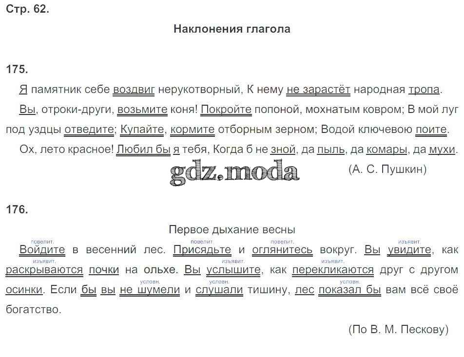 ГДЗ решение к заданию № 62 Русский язык 6 класс рабочая тетрадь Тростенцова Л.А. (к уч. Ладыженской) Экзамен 2018 Часть 1, Часть 2 ФГОС бесплатно на гдз.мода!
