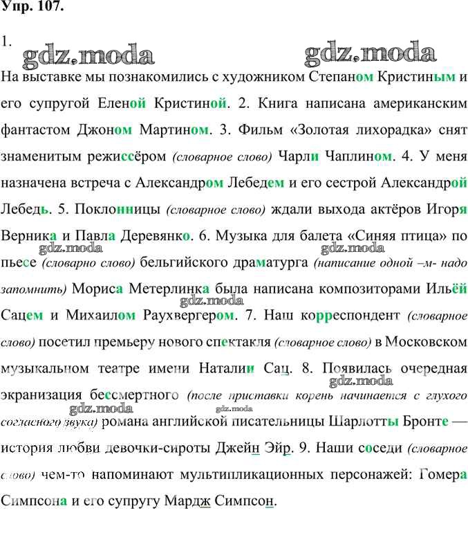 ОТВЕТ на задание № 107 Учебник по Русскому языку 6 класс Александрова