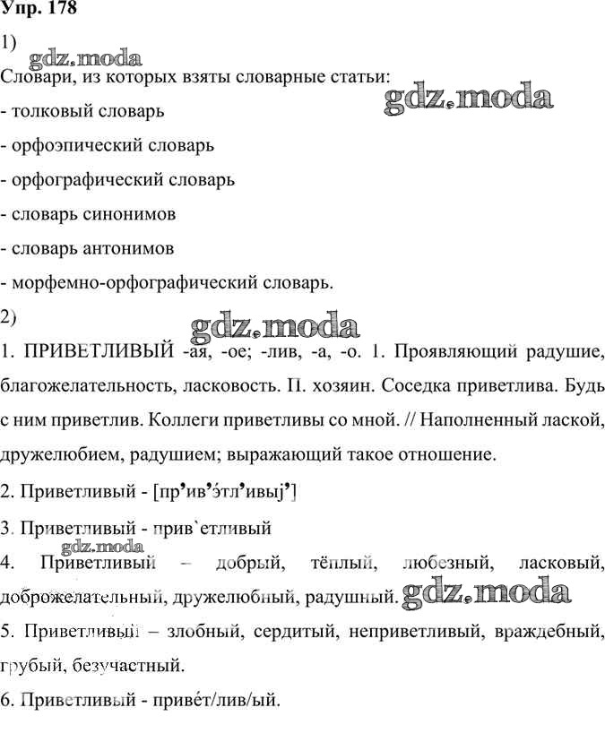 ОТВЕТ на задание № 178 Учебник по Русскому языку 6 класс Александрова