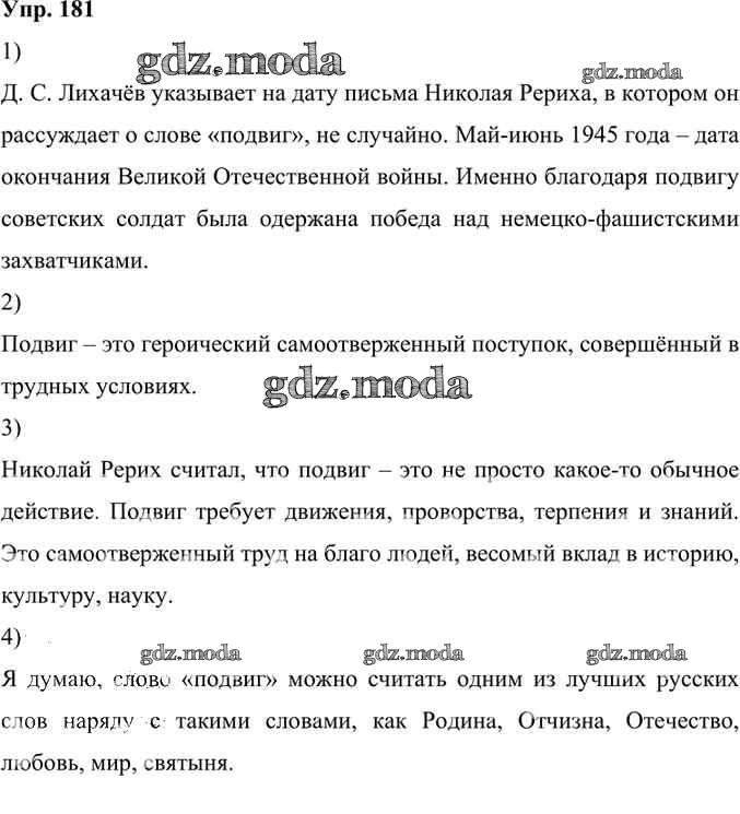 ГДЗ решение к заданию № 181 Русский родной язык 6 класс Александрова О.М. Просвещение 2020 ФГОС бесплатно на гдз.мода!