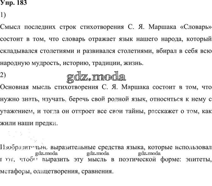 ГДЗ решение к заданию № 183 Русский родной язык 6 класс Александрова О.М. Просвещение 2020 ФГОС бесплатно на гдз.мода!