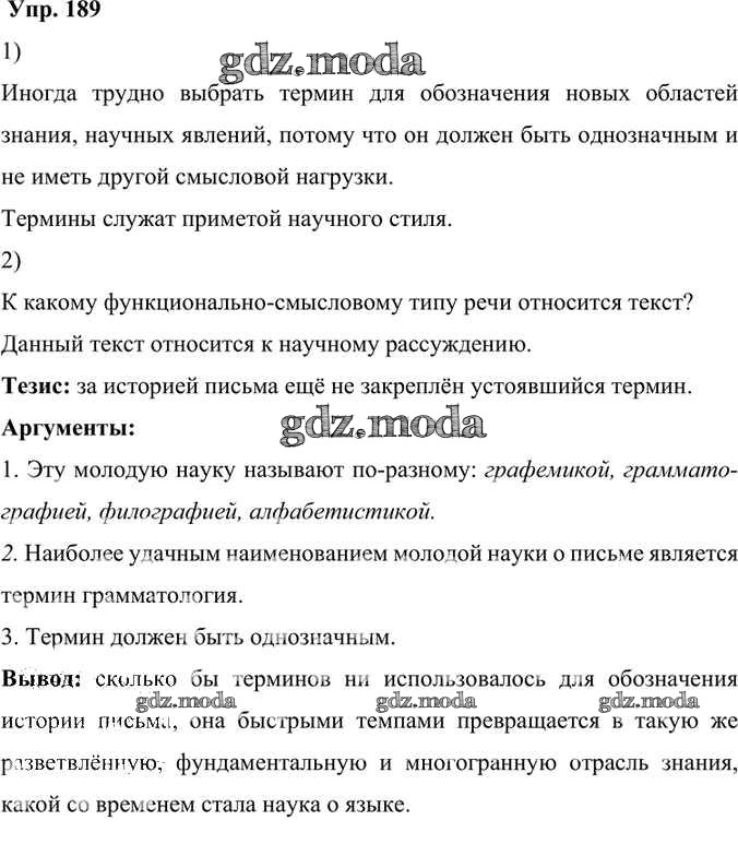 ОТВЕТ на задание № 189 Учебник по Русскому языку 6 класс Александрова